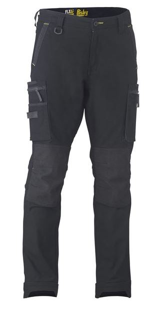 97% Cotton, 3% Spandex Canvas 280gsm. 100% Nylon Cordura® 235gsm. 57.7% Nylon, 16% Kevlar® 17.6% PU, 8.7% Spandex. Stretch cotton canvas for comfort and movement. Curved waistband to prevent gaping at back. Cordura® on high stress areas for increase durability. Crotch gusset to prevent splitting. Multi functional pockets incl. oversized cargo pockets and tool loops. Contrast Kevlar® knee patches for durability and to prevent abrasion. Contoured leg and back shaped knee panel. Hem boot cuff. Seven reinforced belt loops. YKK zipper