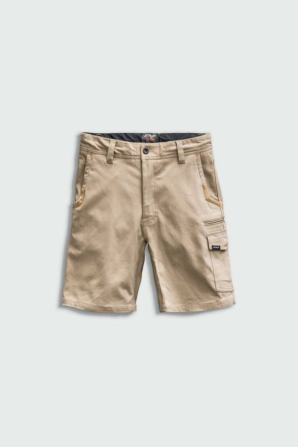 270gsm preshrunk 97% Cotton | 3% Spandex Twill. Straight-Fit Utility Short. 20" Leg Length sits just above the knee. 100% Stretch Fabrication For Ease Of Movement And Comfort