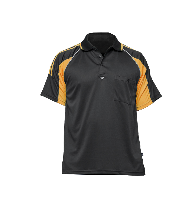 Soft touch Microfibre. Knitted 100% Polyester collar. Buttoned front chest pocket with pen holder. Contrast lower front panel. Contrast panels with sleeve stripes. Light weight, quick-dry, breathable fabric. Excellent sun protection - UPF50+. Complies with AS/NZS4399. Complies with AS/NZS1906.4 - Class F Material Type: 175 gsm 100% Mini Mesh Microfibre Polyester