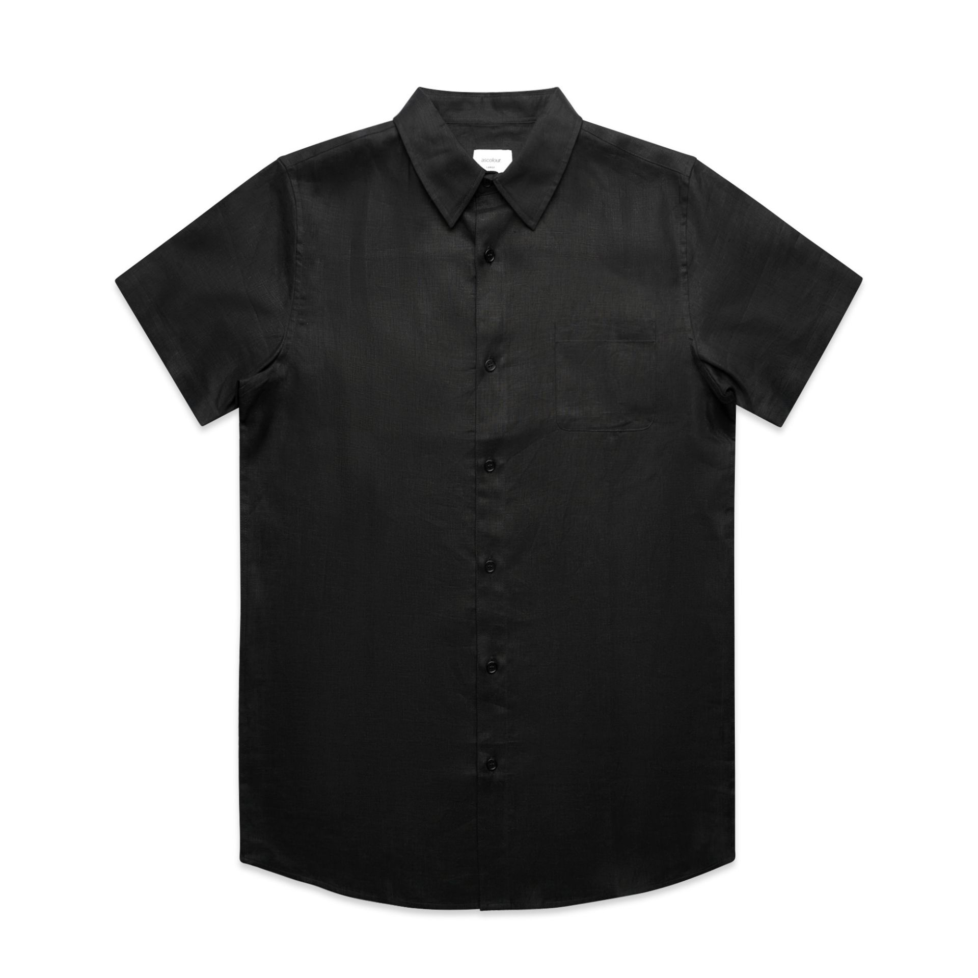 Regular fit. Light weight, 140 GSM. 100% Linen.Short sleeve shirt, tonal corozo nut buttons, chest pocket, back yoke, preshrunk to minimise shrinkage