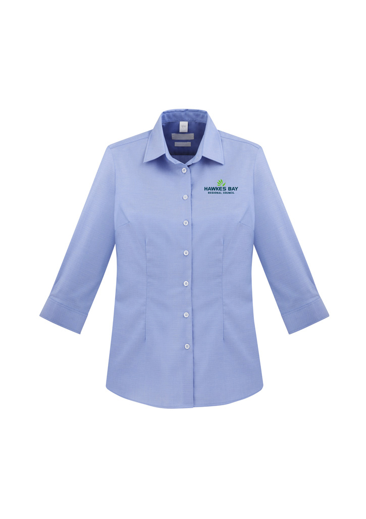 Wrinkle resistant 100% Premium Cotton. Yarn dyed subtle herringbone weave fabric. Advanced performance fabric finish for better wrinkle resistance. Ladies features bust darts, waist shaping and neatly finished placket. Can be worn tucked in or out