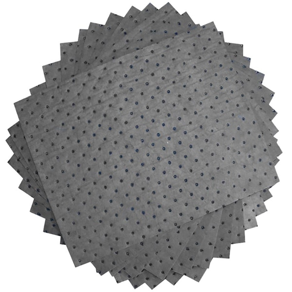 Heavy weight universal absorbent pads can be used with all liquid spills including oils, fuels, solvents, liquid chemicals and bodily fluids. Heavyweight universal absorbent pads can be used with all liquid spills including oils, fuels, solvents, liquid chemicals and bodily fluids. Constructed from polypropylene, thermally bonded with the dimpled surface to allow fast wicking and easy cleanup. Dimensions: 40cm x 50cm, 400GSM. Each pad absorbs up to 1.2L.Cartons have a perforated opening that allows cartons to be quickly turned into a desktop dispenser.
