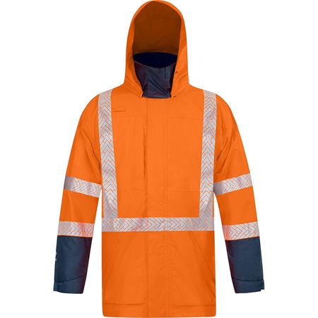 Stay dry for 12hrs in our Bison Stamina ECO Jackets with a high 25,000mm waterproof rating. Your ECO option - made from Recycled Polyester, this is a great option for organisations focused on eco friendly and sustainable choices. Redeveloped shoulder and seam design means a better range of motion in the arms. Completely seam sealed to keep the water out. Hard wearing rip stop fabric for extra durability and resistance to snags and tears while working. Ultra-Flect™ segmented tape allows for enhanced breathability, flexibility, and freedom of movement. Redeveloped hood with quick set adjusters for a faster and easier hood set up. Fold away/removable hood with peak for better protection, flexible structure allows for personalised shape. Redeveloped neck gaiter for improved protection from the elements. Heaps of storage with two chest pockets and two zipped angled waist pockets, comms loop. Neoprene storm cuffs with velcro adjustors on sleeves, ideal for preventing water ingress with arms overhead. Two-way waterproof zip and internal zip that is compatible with any other Stamina vests and allows you to easily zip the vest in. Orange. Polyester