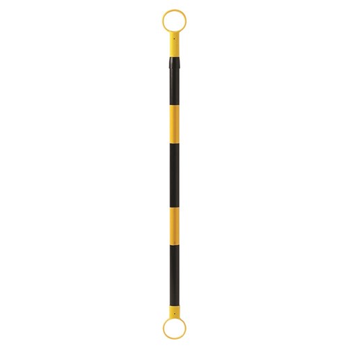Made from exterior grade ABS plastic and UV stabilised to withstand temperature extremes and sunlight. Extendable bar starts at 135cm, extending to 210cm long as required. Includes simple twist lock system at required length. Features 4 yellow reflective bands for added visibility. Includes soft durable rubber loops on both ends for easy attachment to Pro Choice Safety Gear Hi-Vis traffic cones and bollards