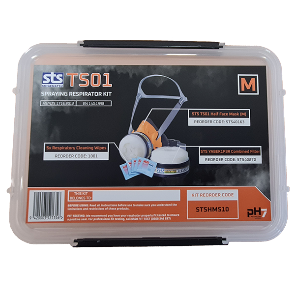 The Spraying Respirator Kit is suitable for working with organic, inorganic, sulphur dioxide and other acidic gases. It’s also suitable for dealing with vapours, ammonia and organic ammonia derivatives, as well as particles. The kit includes the TS01 Half Mask, a YABEK1P3R Filter, and 5x Respiratory Wipes, is available in sizes Medium and Large.